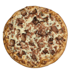 Our own Golden Brown Sauce, Brothers hot/mild pepperoni, salami, ground beef, sausage, smoked bacon, and mozzarella.